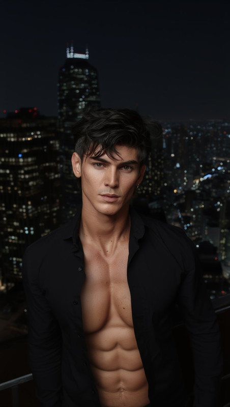 Вечер опустился внезапно, как тень над бездной. Я оделся просто, но с той небрежной элегантностью, что скрывала силу: чёрная рубашка из тонкого шёлка, рукава закатаны до локтей, обнажая ветвистые вены под кожей; несколько пуговиц расстёгнуты, открывая грудь, где пульсировал скрытый жар. Классические брюки и туфли из мягкой кожи завершали образ — тёмный, как ночь в Пандемониуме.