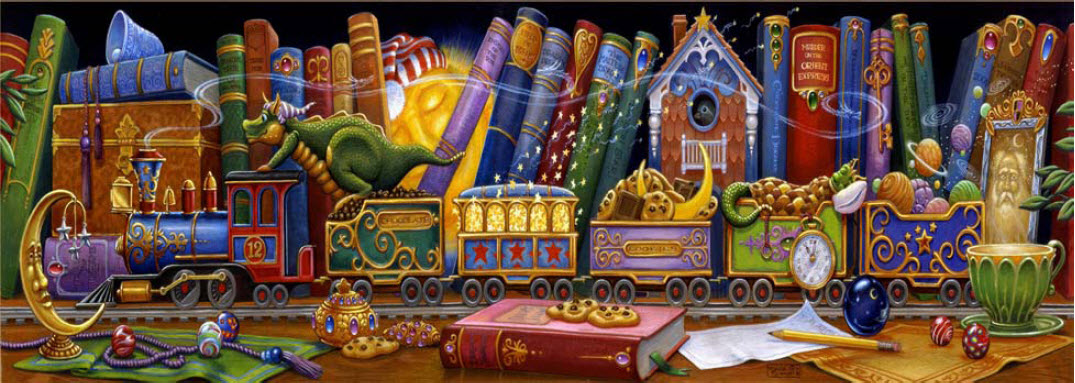 Конечно, ведь это сказочная картина - поезд мечты. Да я сама с восхищением каждый раз вглядываюсь в крестики, которые складывают картину с драконами и множеством книг.