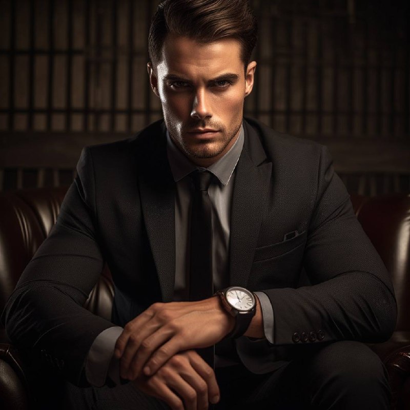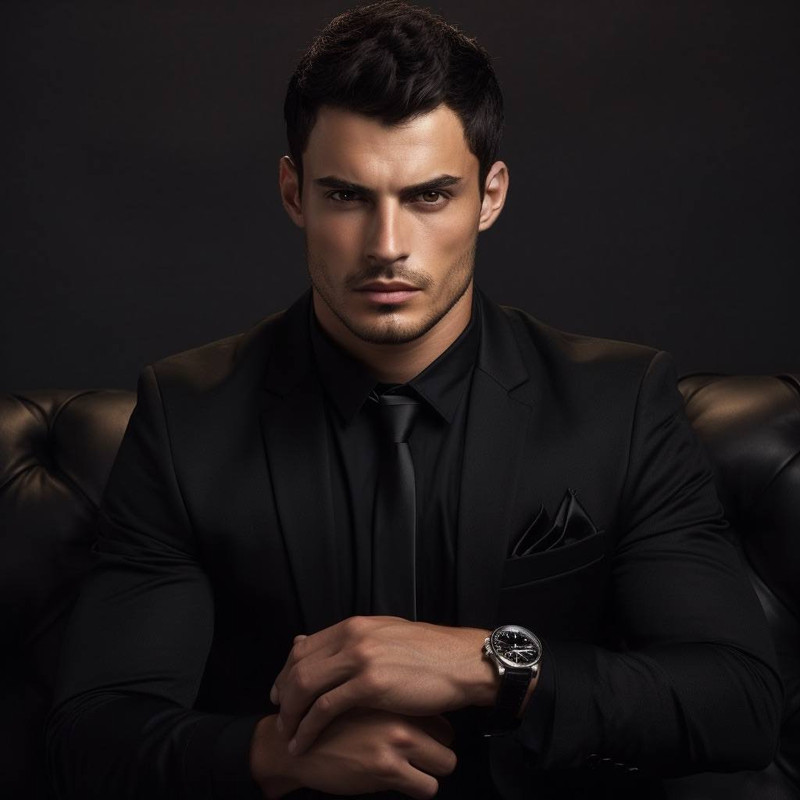Беспросветно темные глаза сосредоточенно смотрят вперед. Прямой нос, и плотно сжатые губы. Под стать глазам, волосы и цвет смокинга, отделанного шелковыми лацканами.
