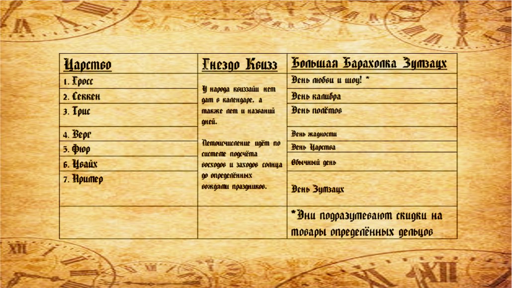 *Об исчислении дат в календаре гоблинов Большой Барахолки Зумзацх ведётся множество споров ввиду разных данных в одном месяце в разные года.