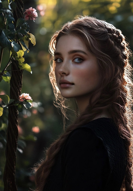 Мы шли дальше, и вскоре я заметила изящную арку, оплетённую вьющимися расстениями. Корни, словно живые, обвивали её так, что создавалось впечатление, будто арка вырастала прямо из земли. Цветы на этих лозах — белоснежные и пахнущие сладким, — трепетали на лёгком ветру.