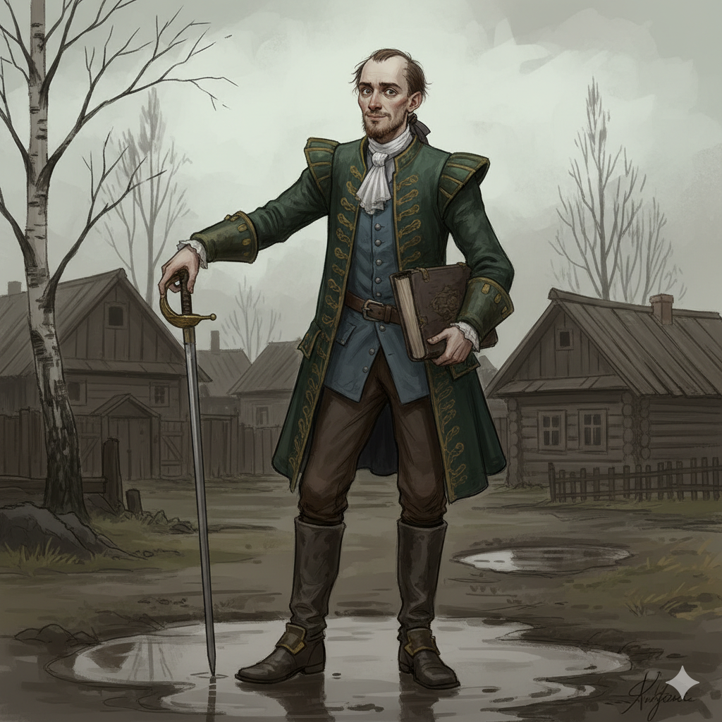 Одета же моя свекровь была в кофейного цвета сарафан-ферязь из тяжёлого, казалось, дорогого штофа, но что-то в фасоне и густо нашитых, слегка потертых позументах кричало не о столичной изысканности, а об упрямом провинциальном желании выказать богатство. На голове — тёмный плат с крупным давящим узором, заколотый под подбородком брошью, массивной, как дверная ручка. В одной костлявой руке она сжимала клюку с набалдашником из польского камня (больше для вида, чем по необходимости), а в другой — маленькую, но увесистую бархатную сумочку-ридикюль, которую она нервно теребила пальцами, будто проверяя, на месте ли застёжка.