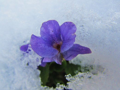 Я встрепенулась, перевернула открытку. Фиалка. Такая самонадеянная, смешная, а вокруг – снег…