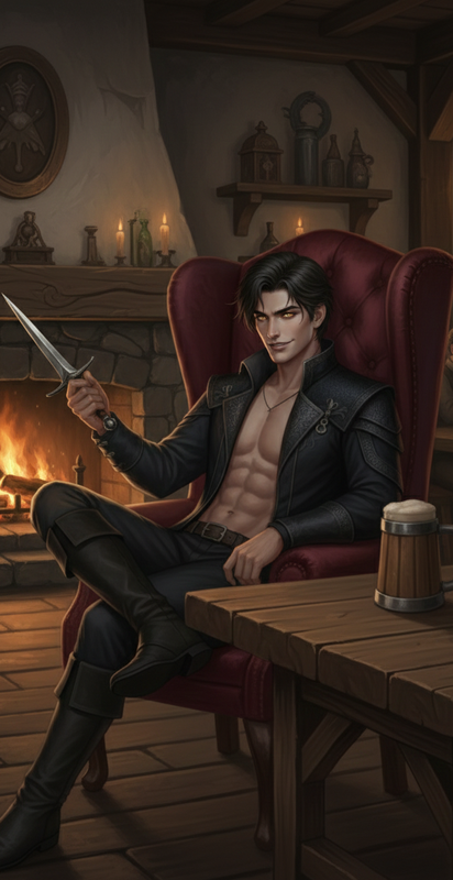 Чуть поодаль, на каменной балюстраде, сидит Киллиан. Наш младший. Он демонстративно проигнорировал дресс-код: потертая кожаная жилетка, рубаха расстегнута на груди.