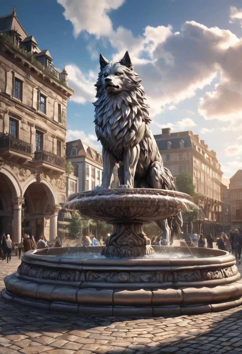 Мы выскакиваем на залитую солнцем площадь, окружённую многоэтажными домами. Посреди неё в небо устремляются тугие струи воды из каменного фонтана, украшенного статуей Первоволка. Нас с Чарли тут же окружает гомон людских голосов, шум воды и негромкая бодрая музыка.
