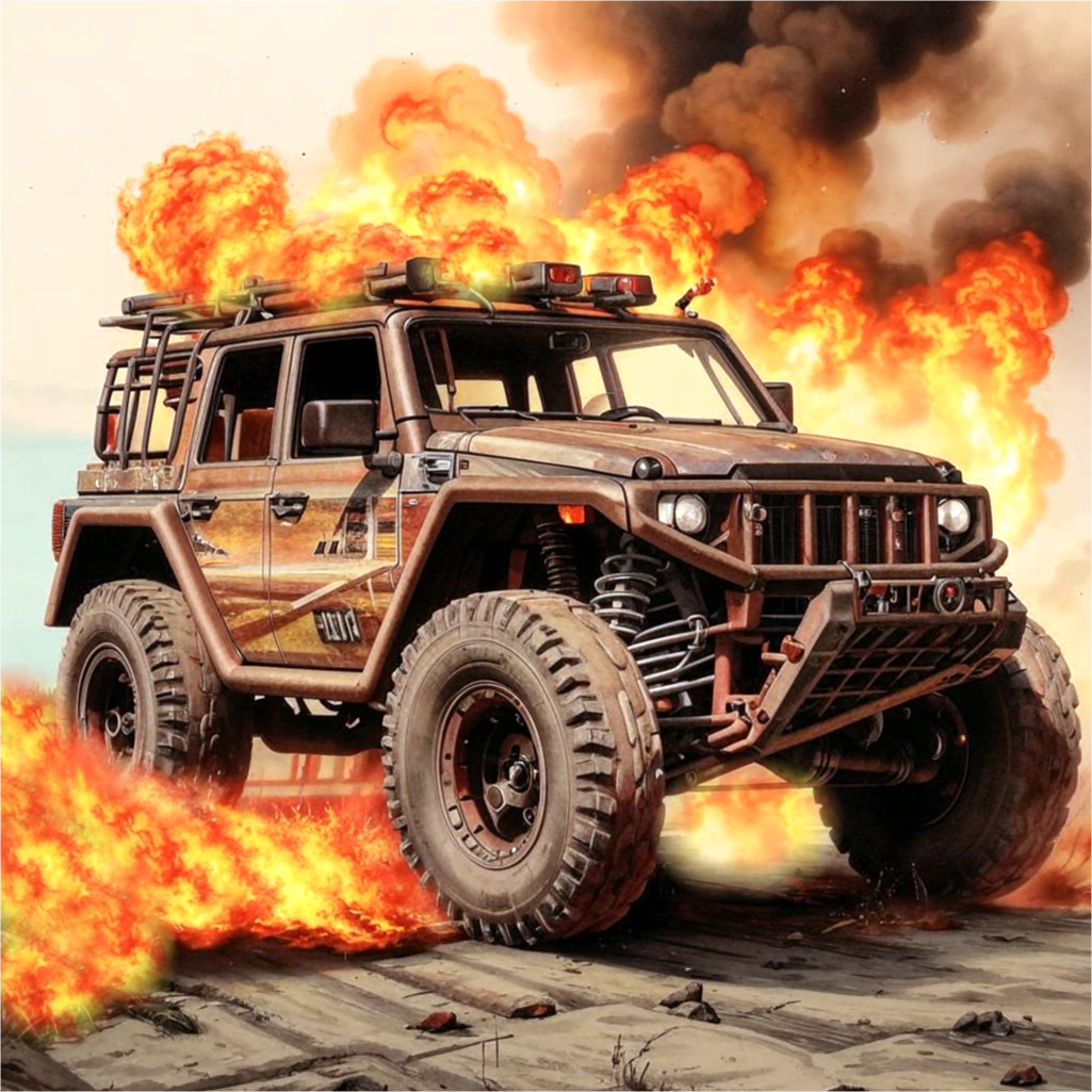 Взрывом выбило стёкла и покорёжило корпус. Пламя лизнуло салон и подорвало неполный бензобак. Но, ни одна из рядом стоящих машин не пострадала. Джип стоял удобно. А людей на улице и так в летний зной не наблюдалось.