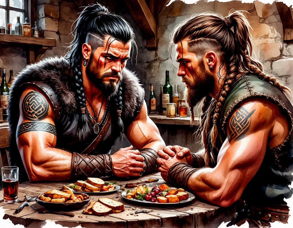 А затем щелкнул пальцами, и двое здоровенных детин, ранее сидевших рядом с ним, вскочили со своих мест и подойдя к блондину, схватили с обеих сторон и поволокли на второй этаж в комнаты постояльцев.
