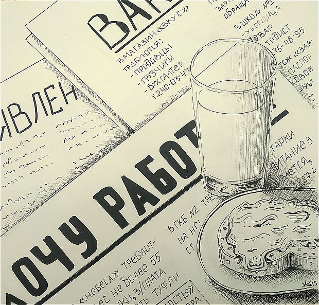 Запихнув продукты в сумку, я повернулась к выходу и налетела на человека в ярко-жёлтом жилете, да так неловко, что он выронил кипу газет. Красочные страницы разметало по замызганному полу магазинчика. Боже, как стыдно! Я извинилась и принялась лихорадочно собирать намокшие грязные листы. Это оказался тираж нового выпуска бесплатной газеты "Хочу работать". Я взяла себе один экземпляр и сунула в рюкзак, вручив остальные парню.
