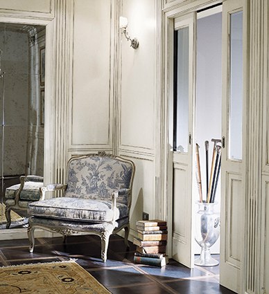 Фото 3. В этой прихожей возле зеркала стоит рокайльное кресло с китайскими мотивами на обивке, производит Bizzotto (Италия). Это и удобно, и сразу задается тон на аристократическую беспечность. Фото предоставлено «Интерьерным Салоном № 1».