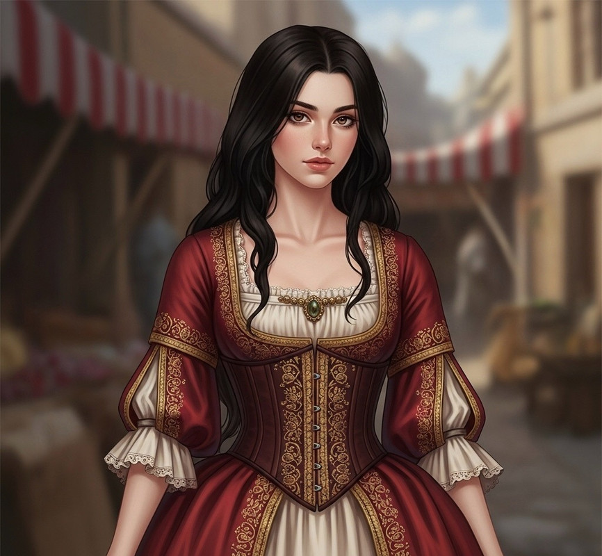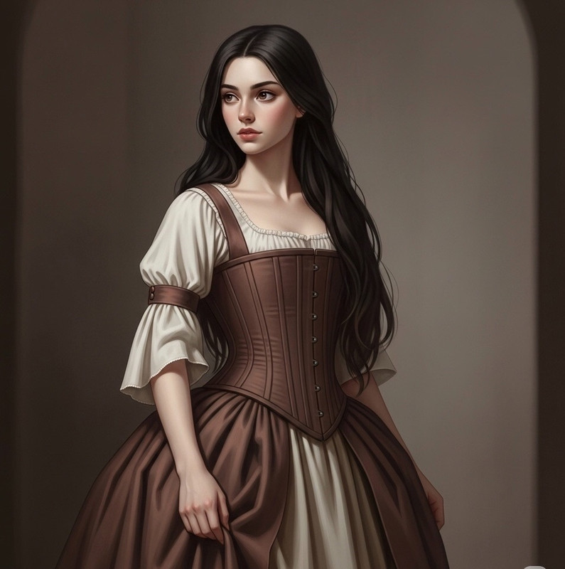 Служанка суетливо заканчивает со сборами, её пальцы ловко застёгивают последние пуговицы на моём платье, затягивая ленты и поправляя тяжёлые складки ткани. Она что-то бормочет себе под нос, явно обеспокоенная.