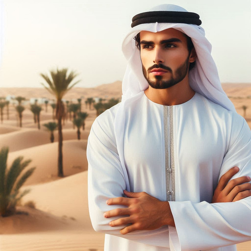 Шейх Ахмед отличался идеальным телосложением, его фигура была словно вырезана из мрамора, сочетая в себе мощь и изящество. Его прекрасная родословная отражалась в пропорциях тела, придающих облику благородство и властность. Каждая мышца на его теле была выражена четко, словно художественная скульптура, подчеркивающая мужественность и силу. Этого не могли скрыть даже восточные одеяния, в которые он был облачен. Широкие плечи, стальные мышцы спины и гибкий стан образовали в нём идеальное сочетание женственных и мужественных черт, что часто привлекает взгляды и вызывает восхищение.