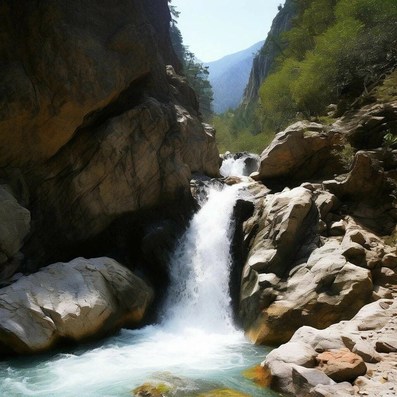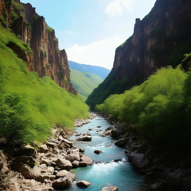 … у каменистого склона в закоулках этого мистического ущелья, где даже самый тихий шёпот отдавался эхом возвышаясь ввысь, улетая высоко в облака, чтобы достичь центра вселенной. Там, где это эхо взрывается, как самая яркая звезда, и распространяется в мириады мелких световых крупиц, рождая космические чудеса…