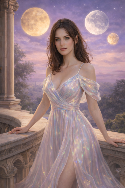 Над головой простиралось удивительное небо лавандового оттенка, по которому медленно плыли три луны — одна серебристая и две золотистые.
