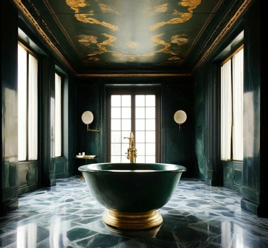 Открыв дверь, я застываю в изумлении. Огромное светлое помещение, едва ли меньше спальни. Темно-зеленый мраморный пол и стены, потолок из темного дерева. По центру — каменная ванная, похожая на широкую овальную вазу для фруктов на низкой золотой ножке. Она наполнена парящей водой. На краю нахожу кусок душистого мыла и полотенце-простынь. За резной ширмой в углу скромно прячется классический унитаз, но только не фаянсовый или фарфоровый, а деревянный.