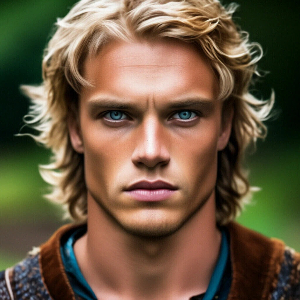 Вошедший эрл был очень красив-молодой,лет 30, светлые вьющиеся волосы, широкие плечи, с пронзительными синими глазами, легкой щетиной, он был похож на весенний ветер, который приносит грозу.