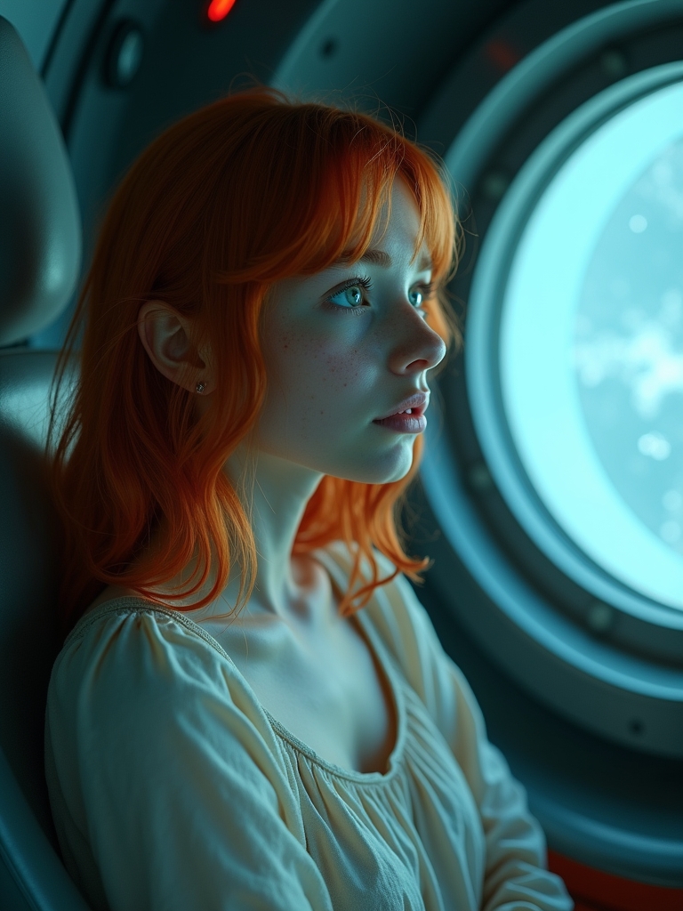 Только вот я не мог оторвать взгляд от девушки: до того она погрузилась в картинку, что не замечала ничего вокруг. Яркие рыжие локоны подчёркивами изящные плечи.