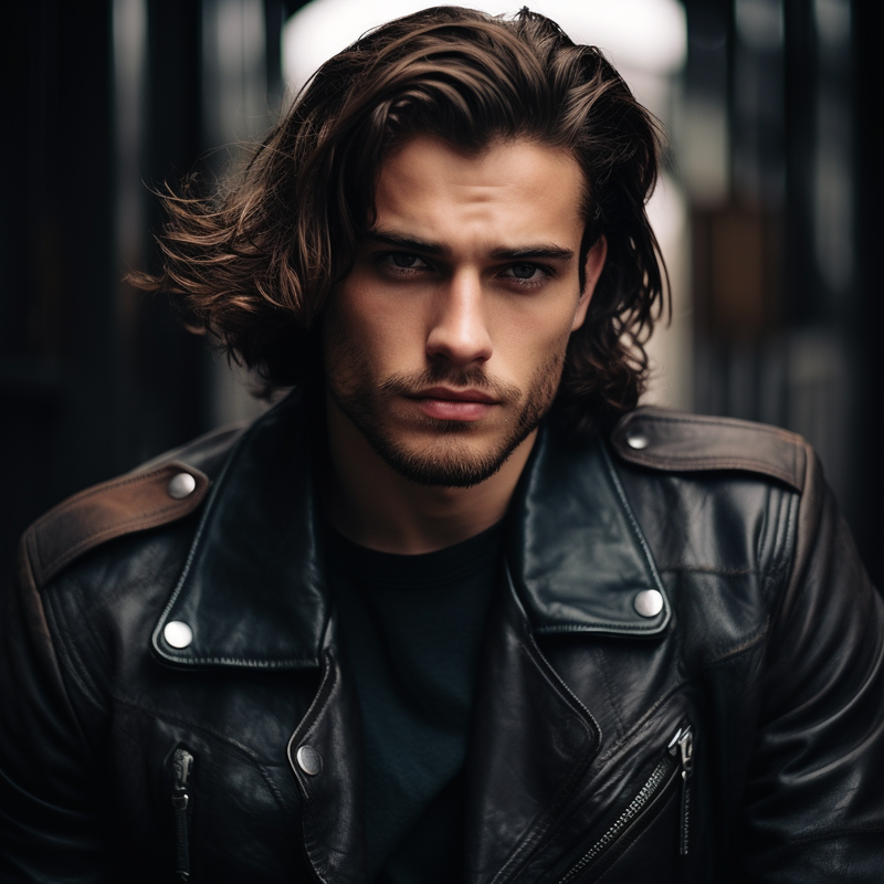 Мощная спина, широкие плечи с проглядывающими трицепсами и бицепсами, узкая талия, подтянутые ягодицы и крепкие ноги. На голове волосы почти до плеч, которые то и дело кудрявятся на кончиках. А если он убирает их в кичку, то все, пиши пропало.