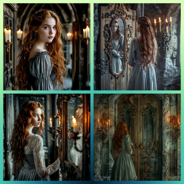 Ну всё, хватит уже откладывать разговор. Останавливаюсь перед монументальным зеркалом в пол. Оно наверняка волшебное, просто моей магии не хватает “прочувствовать потенциал”, ведь даже его деревянная резная рама вибрирует от количества энергии, заключённой в этом старинном артефакте. Из зеркала на меня смотрит милая девушка с длинными волнистыми волосами, отдающими рыжиной, в простом сером платье по фигуре (спасибо Лилиане за подарок). Я свежа и взволнована, от недавних событий на моём теле не осталось следов, но память никуда не денешь…