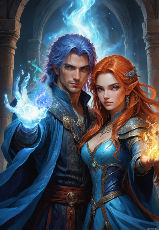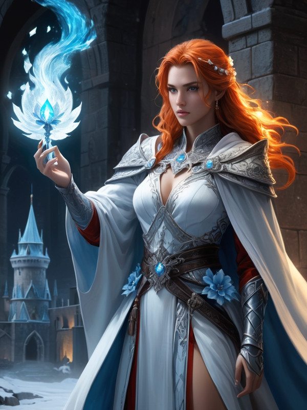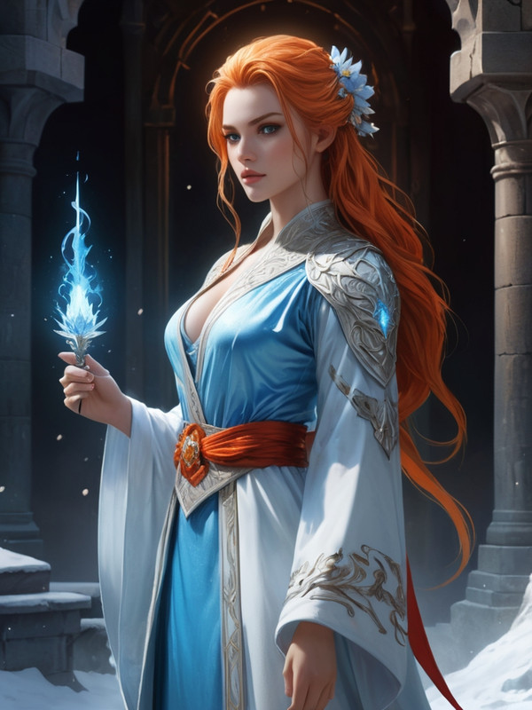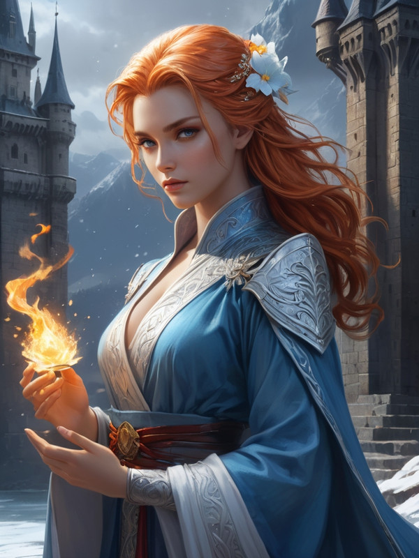Гертруда обволакивает огненной магией снежно-ледяные чары Эльзаса)