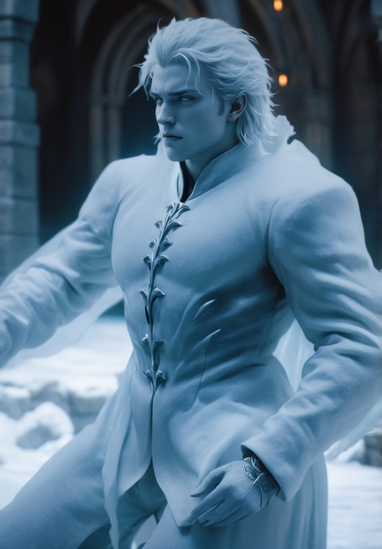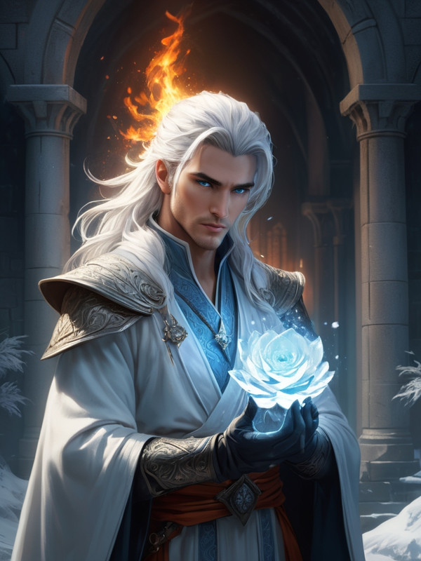 Холодное сердце привычно изогнул один уголок губ, что в его случае, должно быть, означало улыбку, и взмахнул руками, в которых заклубились снежинки, после чего в его ладонях возник удивительной красоты хрустальный цветок, сотканный из ледяной магии. Он посвёркивал сияющими искорками и немного светился, завораживая и заставляя затаить дыхание.