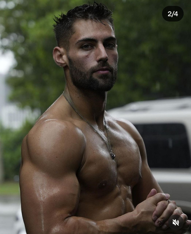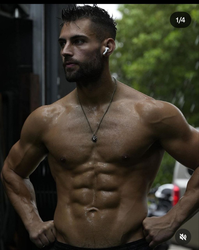 У парня каждая мышца прорисовывается в движении, он явно любитель заниматься спортом, а еще в первых рядах посещает пляжи, ведь кожа у него буквально бронзовая, переливается от влаги. И он явно только вышел из душа.