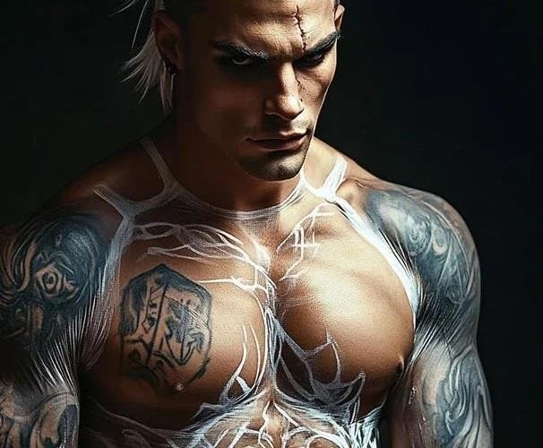 Цепь петлями обвивалась вокруг его торса, низко сползая на его без единой жиринки бедра. С каждым вдохом, звенья скользили по его смуглой коже.