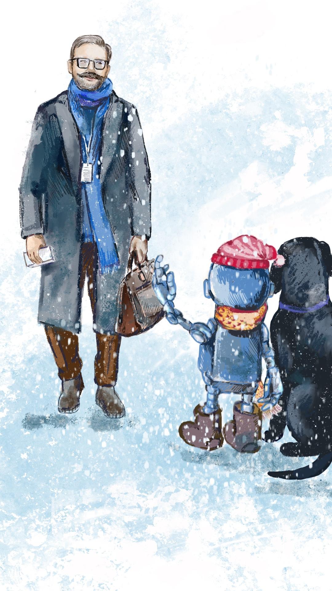 Только робот неподалёку стоит, наблюдает, шарф поправляет. Координирует.