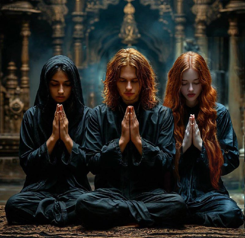 Элай, Рэя и другие участники учений сидели как статуи, непроницаемые, словно отрешённые от всего человеческого. Их лица были лишены эмоций, а тела казались застывшими, будто они перестали существовать в этом мире. И хотя в них не было ничего живого, я чувствовала их силу — как будто все мы были частью чего-то более великого, погружённые в священную тайну.