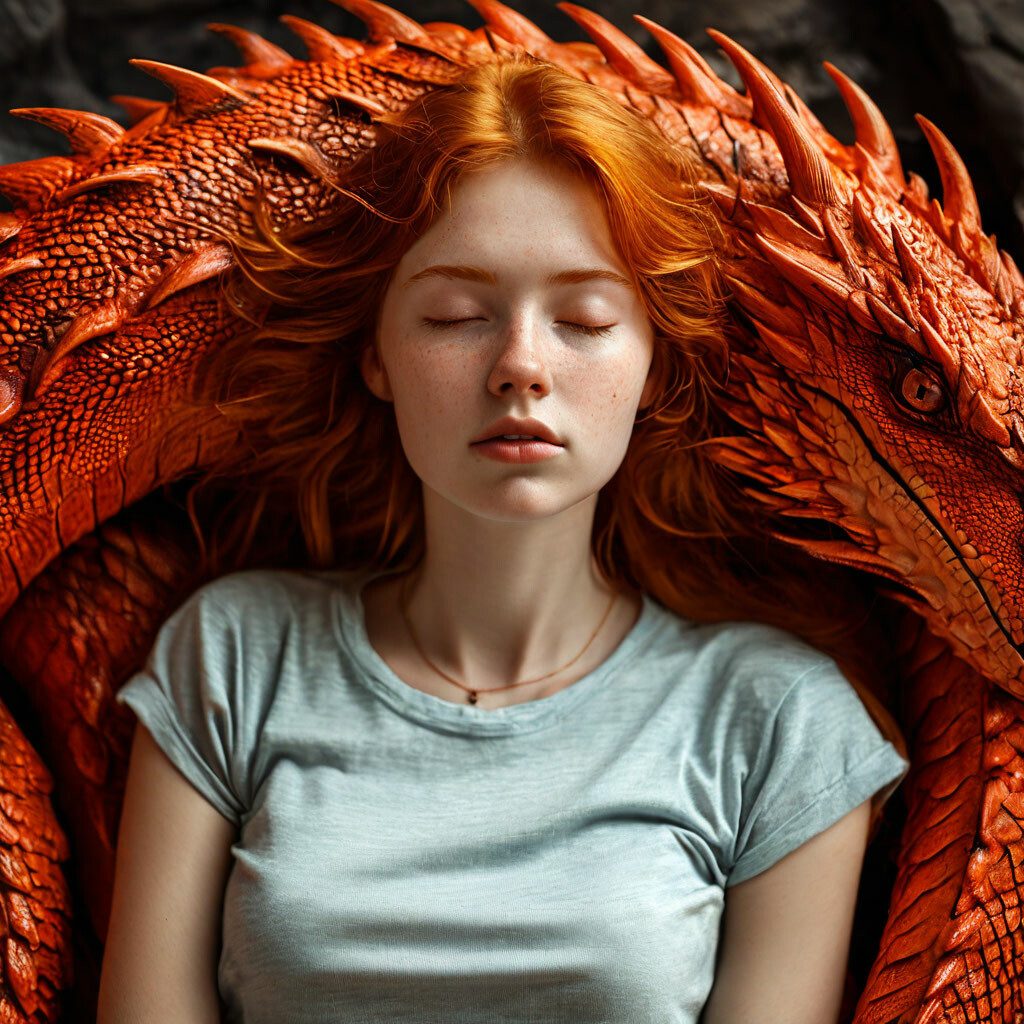 Вдруг разум помутнел. Перед глазами возникла странная картина. Молодая, рыжеволосая женщина с крошечным младенцем на руках. Она подходит к алому дракону.